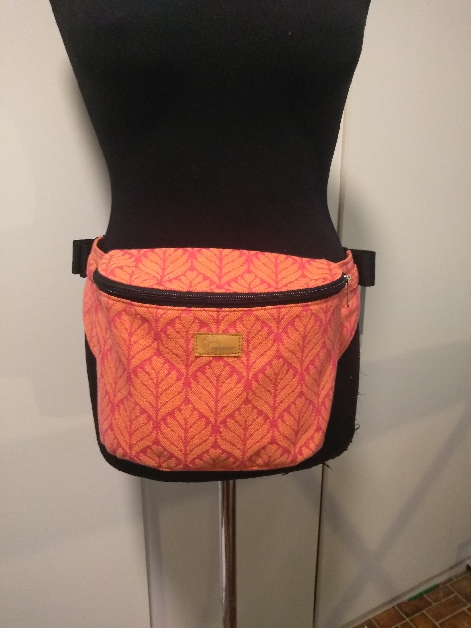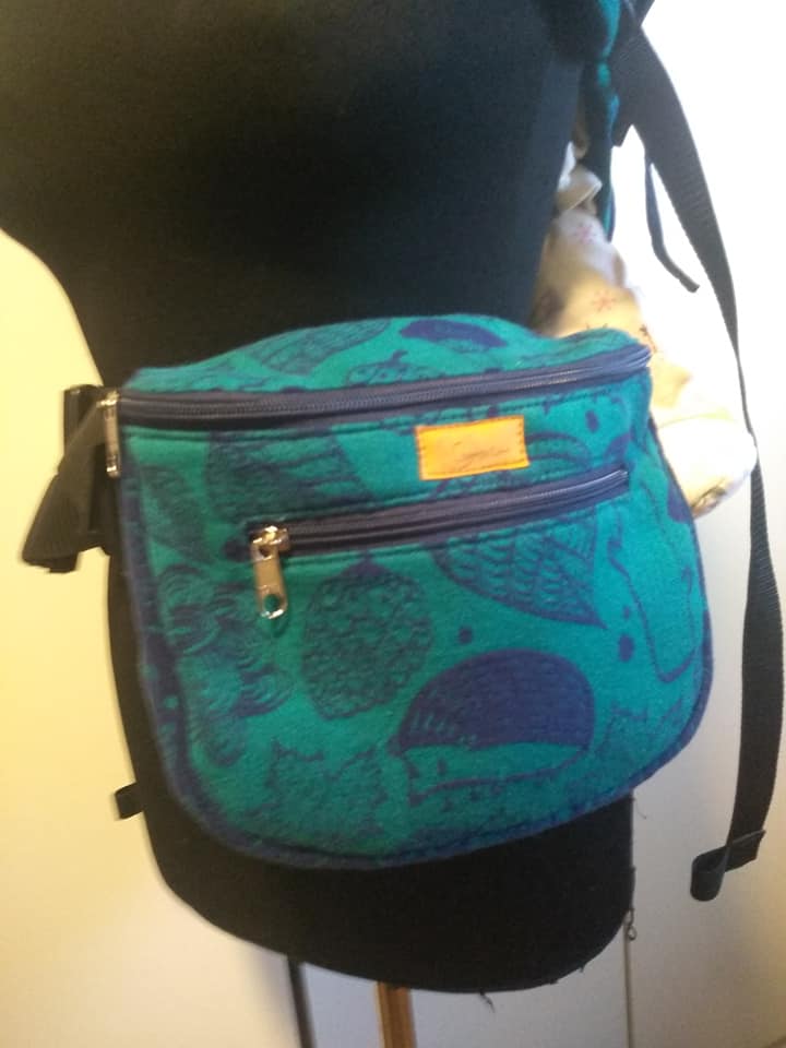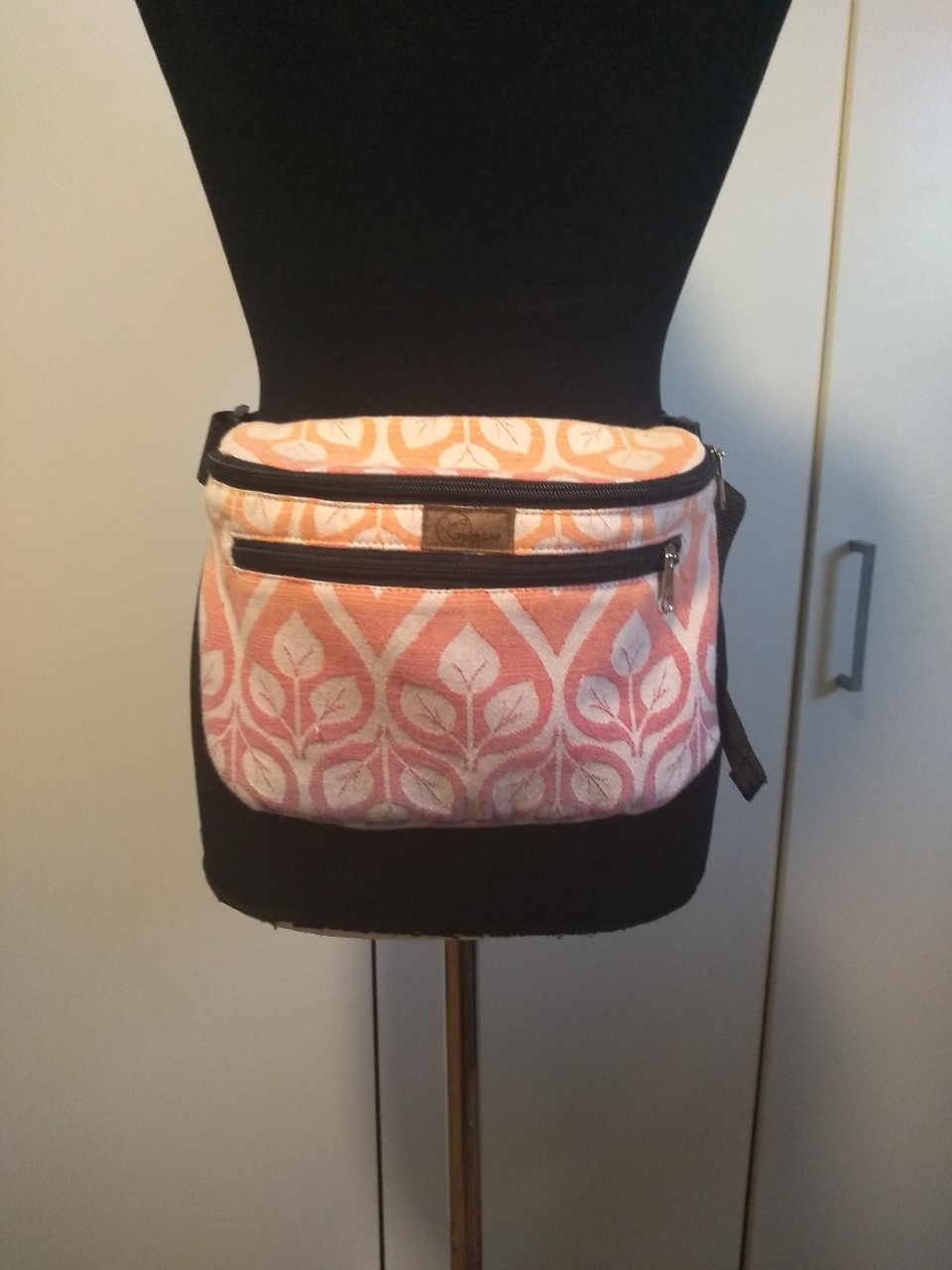 (kb.24*18*9 cm), kérhető első és hátsó cipzárral, valamint hozzávarrott oldalzsebekkel. Pántja kb. 150 cm hosszú heveder (fekete), hozzáillő cipzárral.